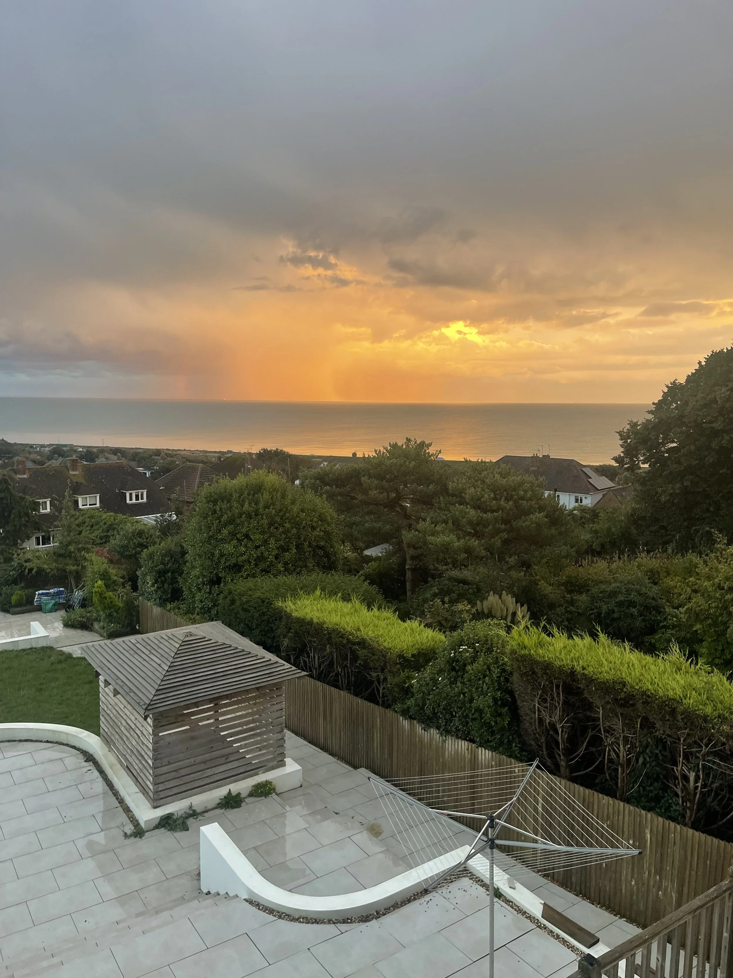 “Sat at home for breakfast on the balcony contemplating the next few days of work before our holiday”